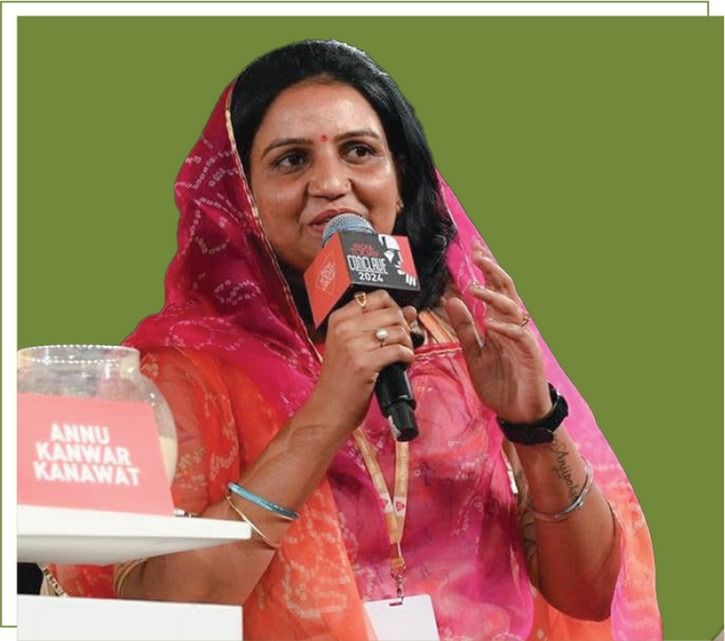 Annu Kanwar Kanawat from Aamlda Village Bhilwara, is the founder of Aamlda Organic Foods and Research Center. Inspired by mushrooms' health benefits and low resource needs, she began cultivating them in her ancestral home. Despite facing societal norms, financial hurdles, and Covid lockdown challenges, she innovated by creating mushroom-based products like snacks and supplements. An MBA holder and assistant professor, Annu empowers rural women through her enterprise and aims to export her products globally. Recognized by Aaj Tak, Doordarshan, and government authorities, she now aspires to enter politics to advocate for grassroots development and women's empowerment.